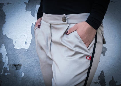 Unsere Hose „Scholastika“ ist dank ihrem originellen, lässigen Schnitt immer ein Hingucker.